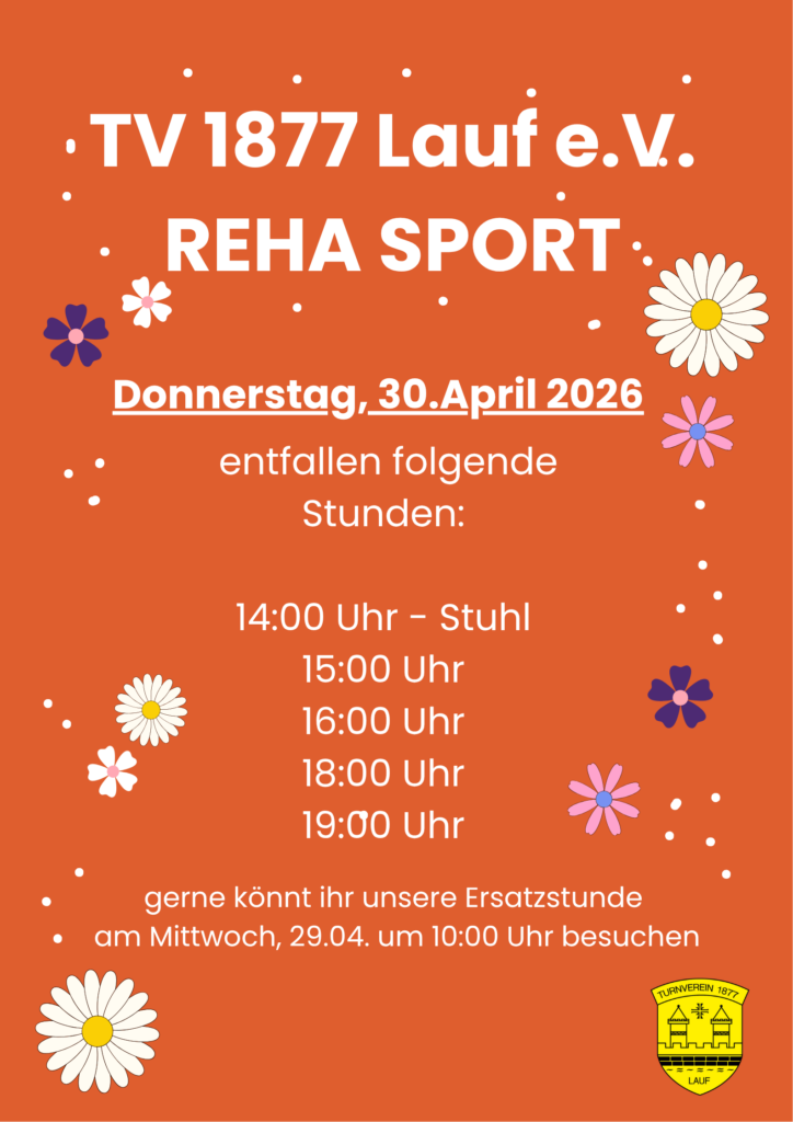 REHA Sport entfällt von Mike Geiswinkler | 20.4.2026 Datum: 30. April 2026Uhrzeit: 14:00 - 20:00Kurse